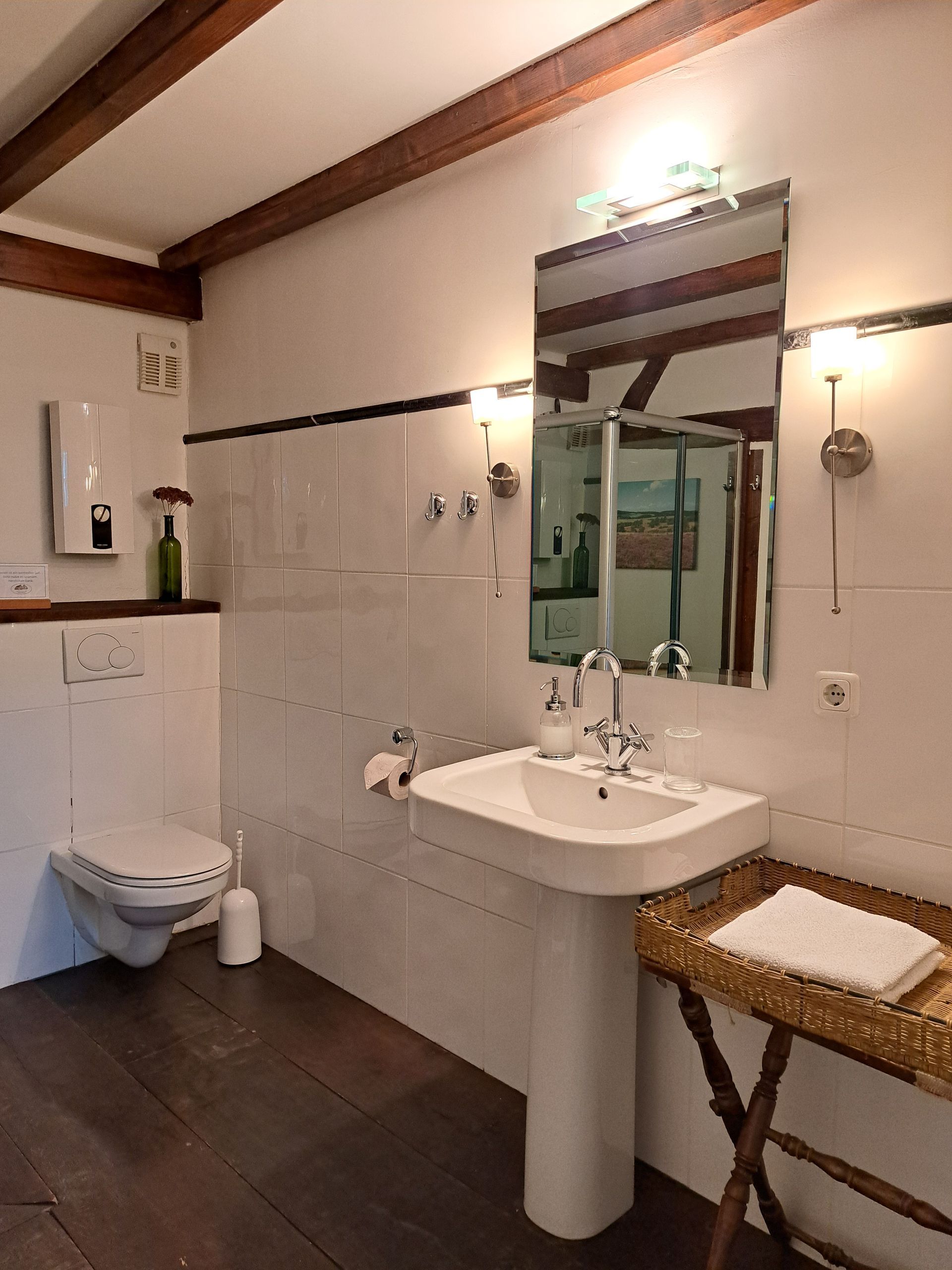 - modern bathroom (toilet, shower, hairdryer)